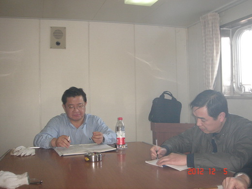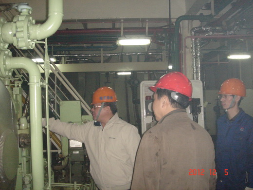 2012年12月5日,蔣海良副總經(jīng)理率相關(guān)職能部門(mén)負(fù)責(zé)人趕赴正在舟山隆昇船業(yè)有限公司進(jìn)行技改修理的“明州62輪”檢查指導(dǎo)工作。
